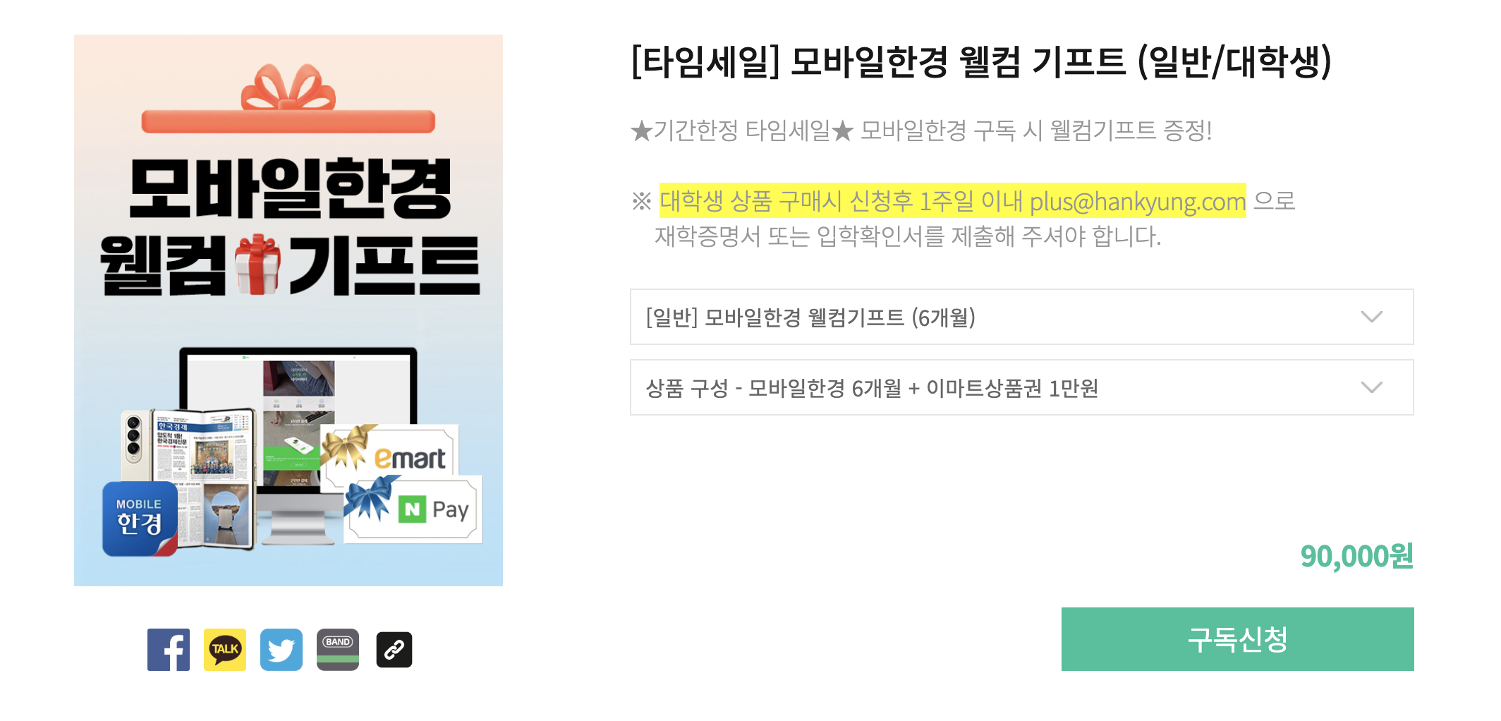 재학증명서 또는 입학확인서 제출이 가능한 대학생의 경우에는 일반 구독자의 구독료보다 50% 정도 저렴합니다.