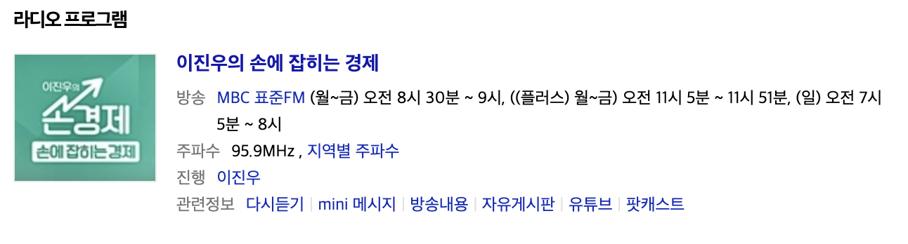 저는 평소에 ‘이진우의 손에 잡히는 경제’라는 프로그램을 자주 듣습니다.